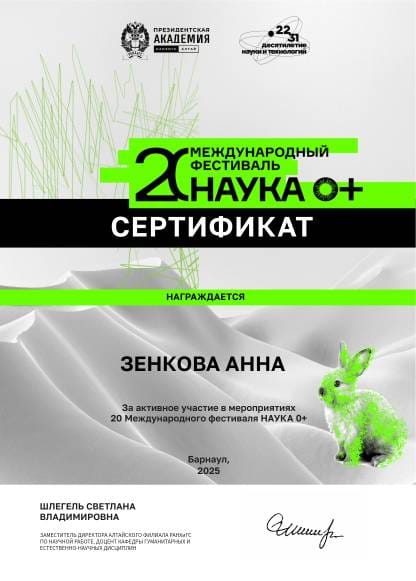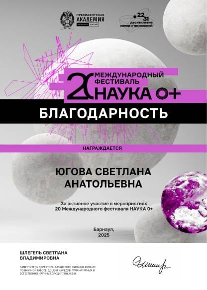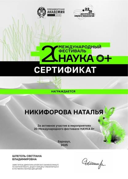 В Алтайском филиале РАНХиГС 28 октября 2025 года состоялся Всероссийский фестиваль науки «Наука 0+», который стал традиционным мероприятием. Он является одним из крупнейших просветительских проектов, направленных на популяризацию науки и проводится в рамках Десятилетия науки и технологий, охватывая всю страну.