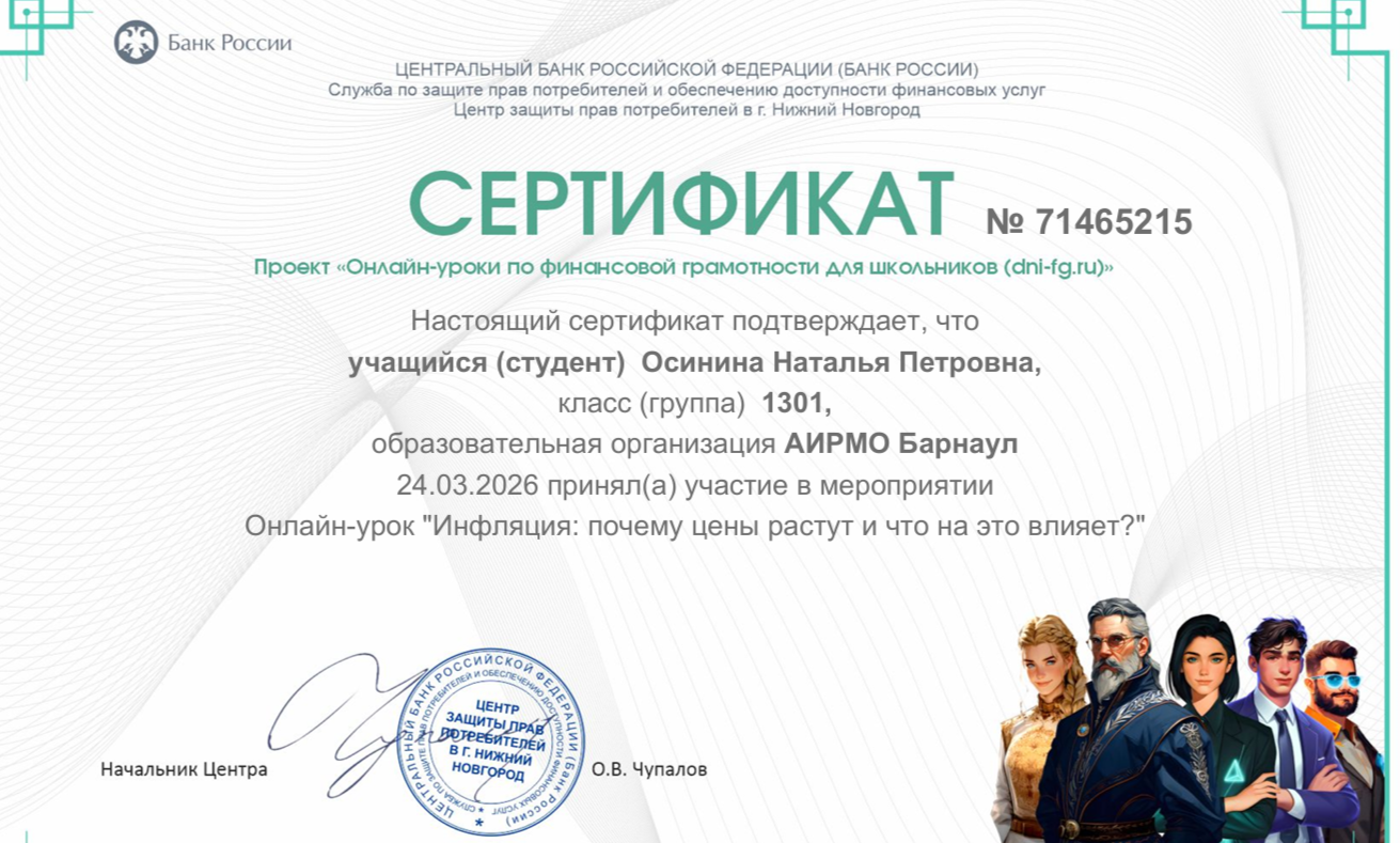 Онлайн-уроки по финансовой грамотности. Осенняя и весенняя сессии 2025- 2026 годов// Онлайн-уроки банка России